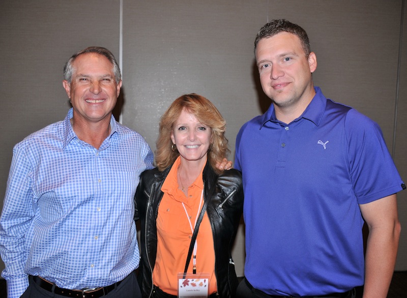 Laurie Kelley dwarfed by golfer Perry Parker and baseball player Jesse Schrader, who both have hemophilia! |