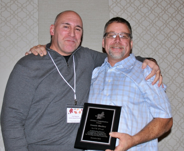 Patrick Mancini, NEHA president, presents Dennis Mackey with an award |
