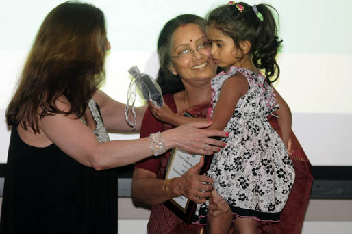 We had special guests present: Usha Parthasarathy and her husband from India. Usha is our volunteer liaison, and we simply would not have an Indian program without her. We have over 500 beneficiaries just in India and Usha maintains updates on them all! She received a surprise award for her dedication. And she accepted Program Partner of the Year award on behalf of the Kunnamkulam Chapter in India.