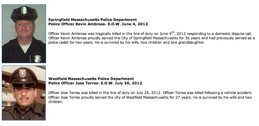 The first annual “Ride to Remember” honored two fallen police officers killed in June 2012 in the line of duty: Kevin Ambrose of Springfield, and José Torres of Westfield. My brother Tim Morrow, a K-9 officer in Springfield, my hometown, was a close friend of Kevin Ambrose. The ride raises