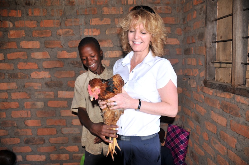 with a surprise: a chicken! Agnes laughs and I hold it for a photo opp. They offer the chicken as a token of their appreciation. The poor thing had its legs