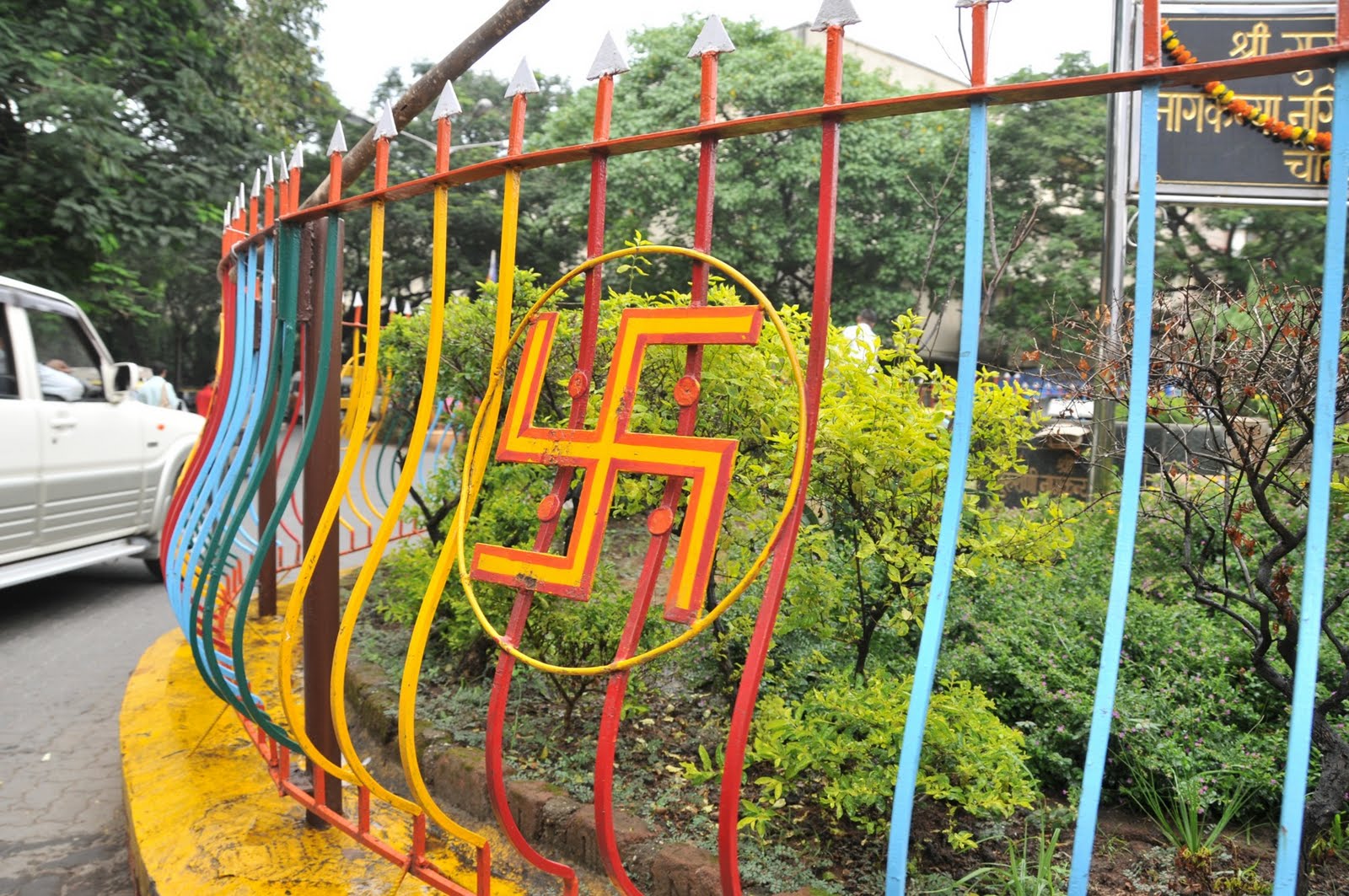As we joked, Balshiram pointed out the security camera in the corner, a very rare luxury, to monitor the factor supplies. I joked that I thought this was their security camera, and I pointed to the wall photo of Ashok Verma, founder of HFI, who passed away in 2004. We all laughed, and felt that Ashok would be proud of us all today, to implement a program that directly and immediately touches the lives of the poorest with hemophilia in India, a program that saves lives. (Photos: Mumbai Chapter team members; scenes near KEM Hospital; the swastika in this form is an ancient Hindu symbol)