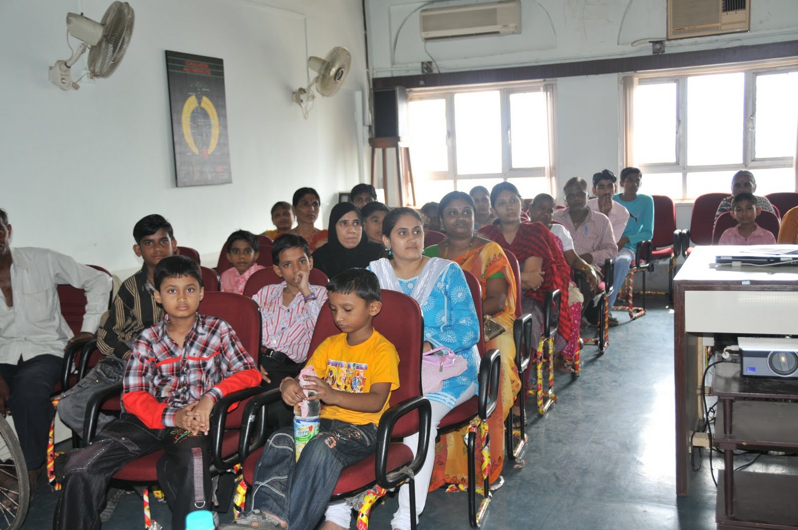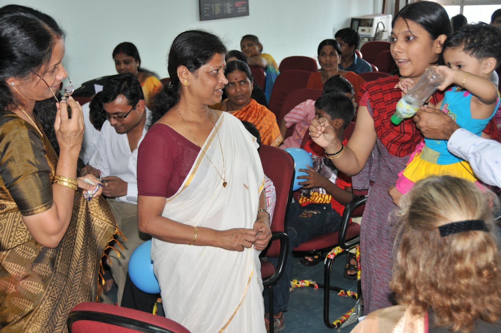 At the hospital, a room full of families warmly greet Usha and me. What a lovely reception! They all stood and applauded, Muslims and Hindus, mothers and fathers. We sat at the front of the room, and Balshiram Gadhave, who came with us last night, acted as host and introduced us, thanked us for the funds from Save One Life, which everyone in the room receives quarterly.