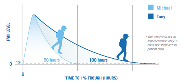 Keep in mind that every person with hemophilia is different. You and another person with hemophilia who are the same age and weight may require different amounts of factor—depending on how your bodies use factor. Your healthcare provider can individualize your treatment regimen by adjusting your infusion dose and frequency, based on how your body uses factor, your activity level, and lifestyle needs.15,16