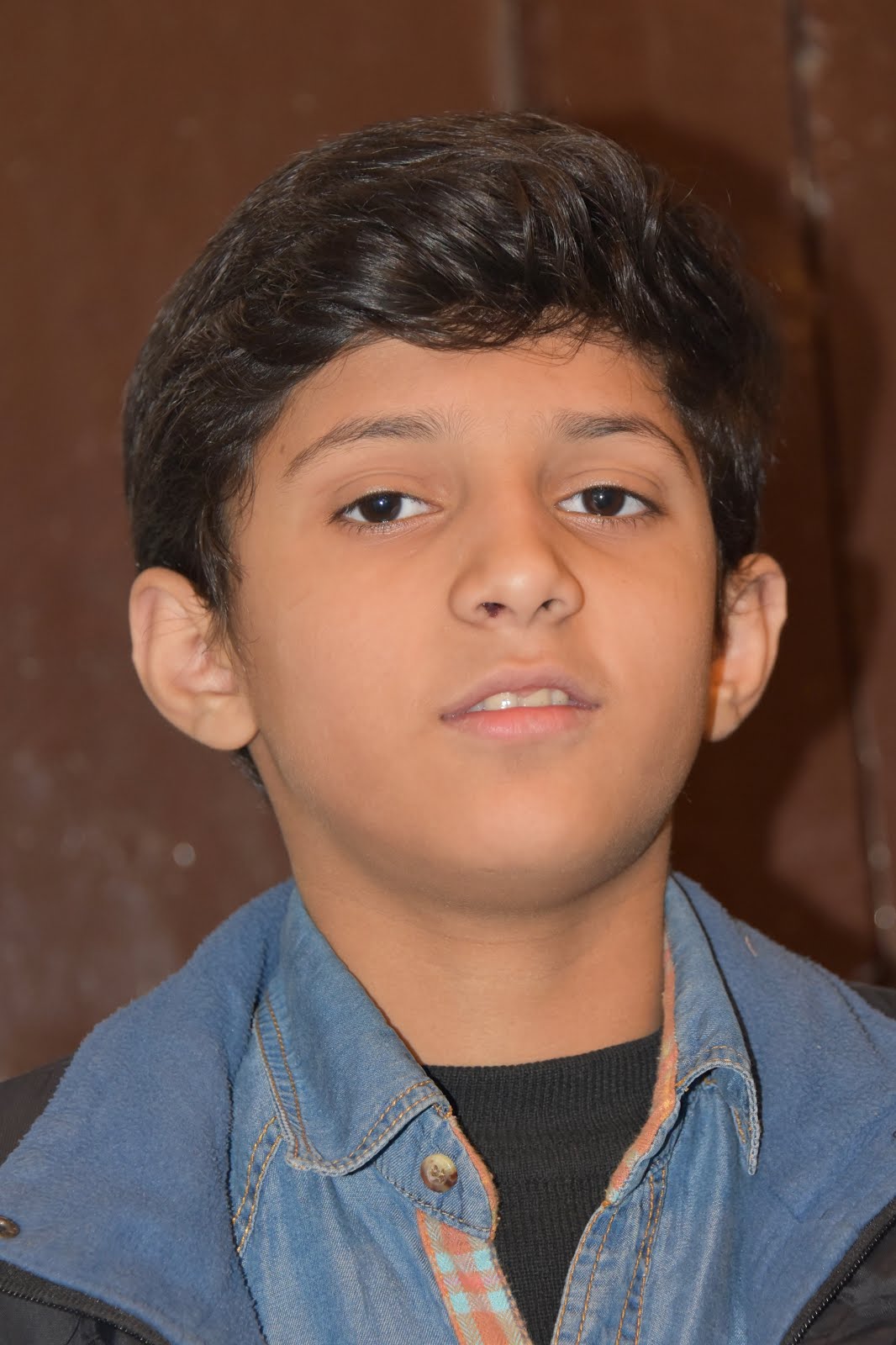 his fair complexion and jet black hair. Age 11, he speaks a little English. He