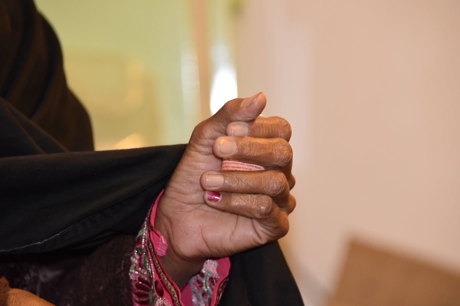 We met Ayesha first, who was wearing a red dress and a very mischevious smile. She is very thin, age 11. She has VWD