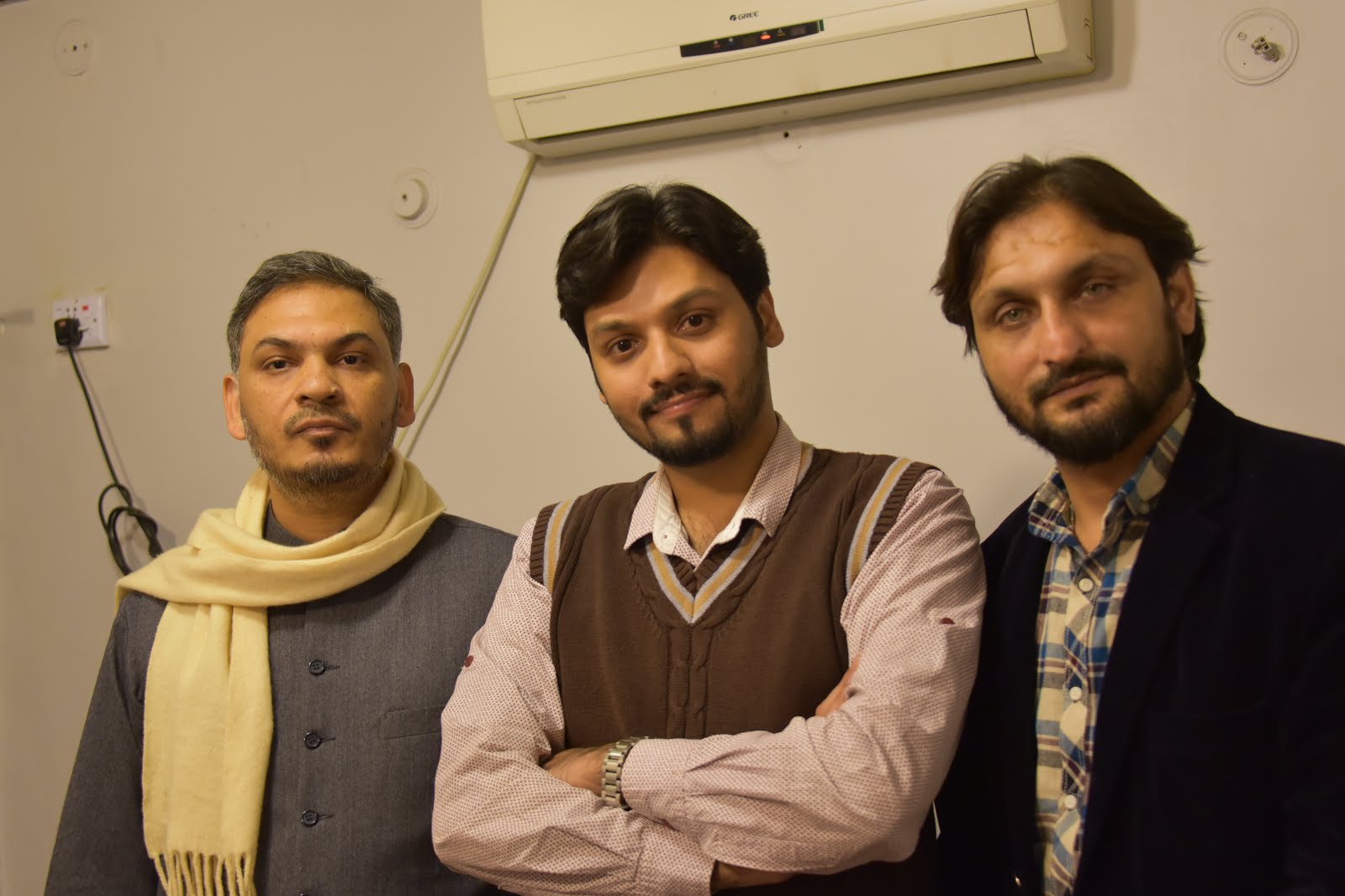 the boys. Shumail Nadim, wearing a maroon jacket– a handsome son-of-a-gun with a