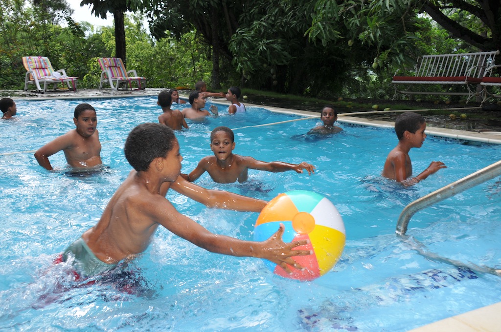 The day begins at 7 am sharp with stretching on the lawn, headed by “Cuchito,” the coach and motivational man who showers the boys with love and discipline, and lots of fun. “Consado? (Tired?)” he shouts; “No!” the boys yell back while marching. “Alegre? (Happy?)” he shouts; “Si! (Yes!)” they reply. For 30 minutes they march, stretch, jump and loosen up, then eat a healthful breakfast. After that, there is pool, arts and crafts, rap sessions, educational seminars or rest times. The older boys look after the younger; and everyone is expected to participate, pitch in, and be the best teammate possible. It’s a successful recipe: the kids are attentive, behaved, active and happy.
