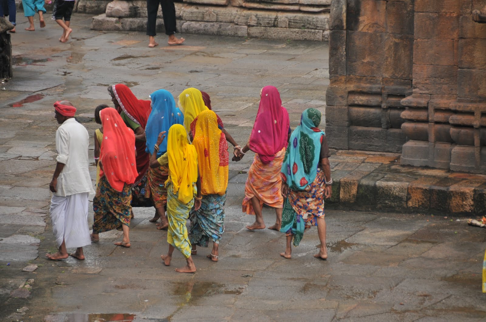 The days in India are flying by in a whirlwind of planes, trains and autos. Usha and I left Durgapur Tuesday afternoon (Day 11) first by car, for a three hour ride back to Calcutta, then by train headed for Bhubaneswar. The Calcutta rail station is immense, a real icon to the British colonial era. Wouldn’t you know, the sky opened up and a monsoon of rain poured down. Everything turned into slushy brown mud. We maneuvered saris, salwar kameezes and four big bags of luggage (with the help of porters!) in the downpour. It was a chaotic scene with thousands of Indians all running about to get tickets and trains, everyone soaked. We couldn’t help but laugh! Little children kept staring at me (big ones too) as I was the lone Westerner among the crowd. Finally we boarded, said good-bye to our dear friend Ujjal Roy, who accompanied us, and then settled in. The train is small, not very clean, and crowded. Our luggage sat in the aisle and I squeezed in the seat with my other luggage, and Usha, for seven hours. At least inside was air-conditioned. Outside was scorching. When we used the restroom, the water from the spigot was scalding! I use the term restroom loosely for it’s anything but restful to use. Often no soap, no paper, and sometimes no toilet! Try that while balancing purse, sari, scarf and yourself as the train lurches.