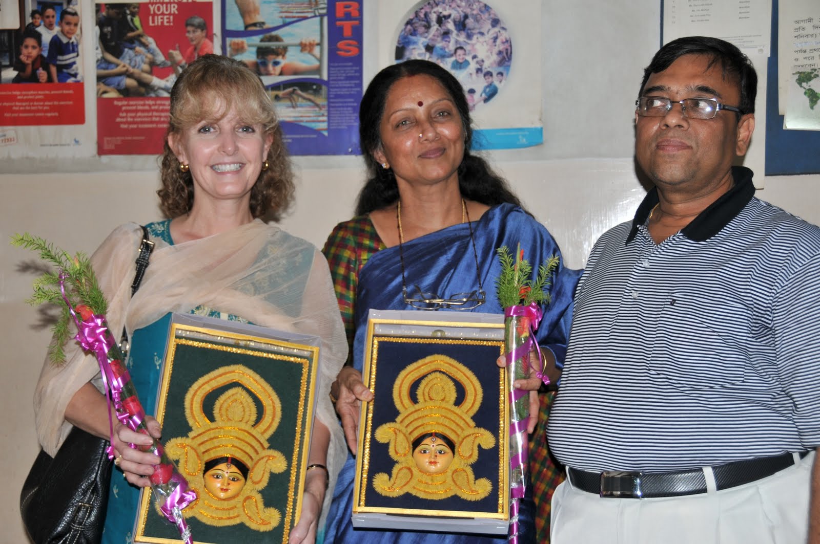 Usha and I were given beautiful bouquets of flowers, and then a big surprise for me: a sari! A bigger surprise: the families wanted to see me wear it. So I was whisked off to a deserted lab room, where I quickly changed into my first sari. Now, saris are probably the most beautiful of all female attire. Every woman, no matter her shape, looks elegant in one. It is made to flatter the female form. However, it takes skill in wearing one so it doesn’t end up around your ankles! Mercifully, my colleagues pinned it to me everywhere so I felt rather propped up. When I re-entered the presentation room, the families exploded into applause, and I appropriately “modeled” it for them. Moments like these erase all differences in who we are. I was reminded of the last words of the classic American book I read on the plane ride over, To Kill a Mockingbird, after Scout says of Tom Robinson, “…he was real nice….” and Atticus replies, “Most people are, Scout, when you finally see them.” Despite our obvious differences in religion, nationality and socioeconomic status, we all can relate to certain basic human experiences—humor and celebration are some of these we all share.