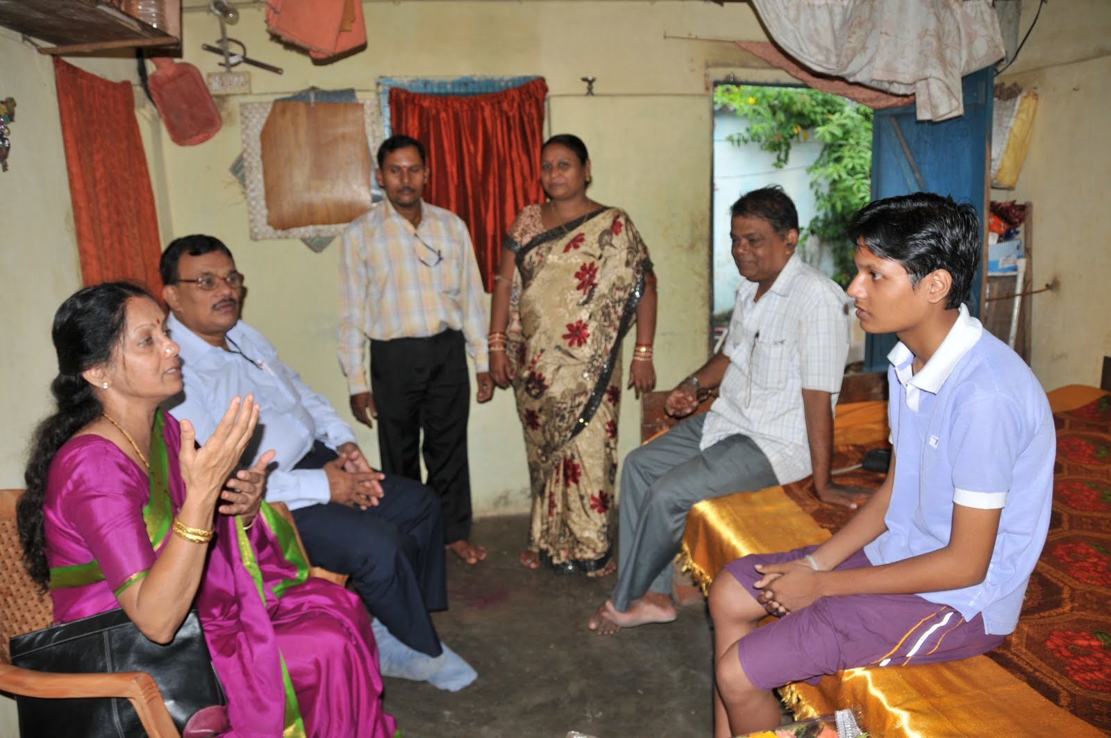 On Tuesday we had two family visits: one fairly poor, and the other doing quite well.Deepak is a 17-year-old, who just started being sponsored through Save One Life. I was excited to meet Deepak to introduce him via video to his sponsor. Deepak is a college student, studying liberal arts, and who eventually wants to be an engineer. He lives in a concrete home with several rooms. The number of rooms, and availability of electricity and plumbing often judge wealth. Deepak bikes to work, despite having severe hemarthrosis in his knees. He is a slightly built young man, soft spoken. Mr. Chandan came with us, as did the president of the society, Dr. G. P. Chootray, a pathologist.