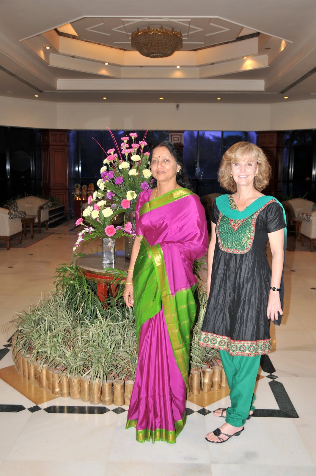 We arrived in Bhubaneswar, the City of Temples, around 9 pm, and were warmly greeted by Mr. Chandan, the secretary of the hemophilia chapter here. The mothers had also come, bearing beautiful flowers. We jaunted off to the Crown hotel, an oasis for us after such long and difficult trips. And they have Wi-Fi! (Photo: Usha and I at the Crown. Even at age 57, Usha is stunningly beautiful and no one wears a sari like her!)