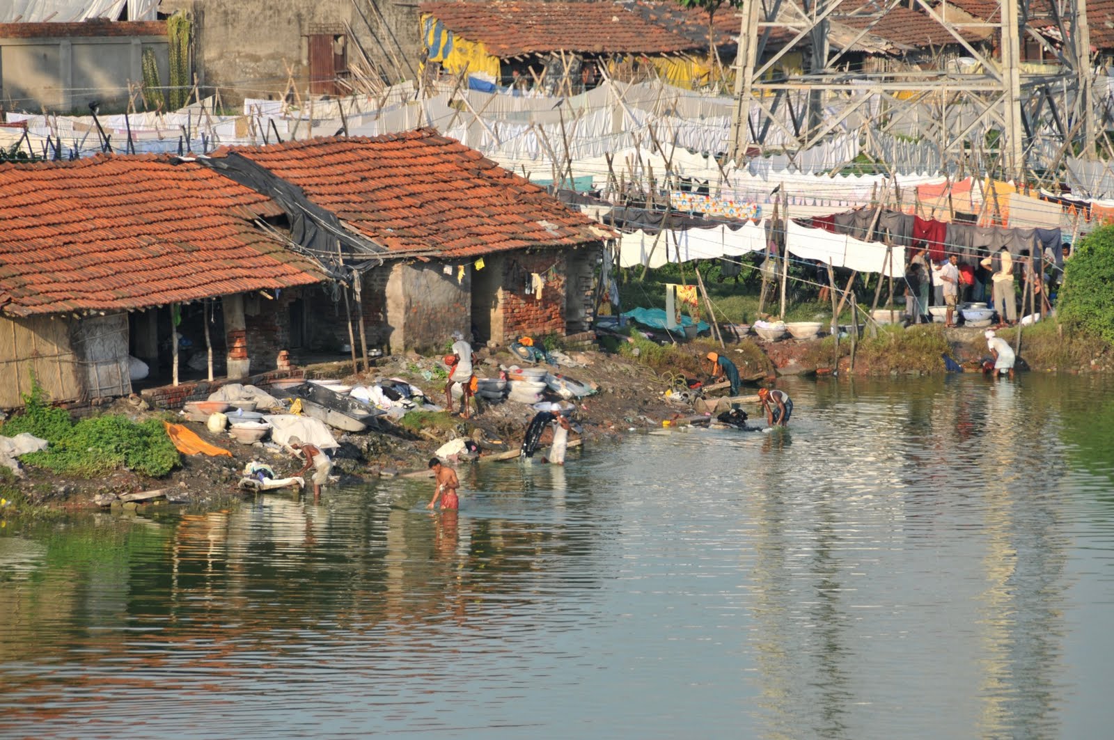 I haven’t ever seen much of Calcutta though it was my second visit. I visited in 2005 on another whirlwind visit of India, and only stayed 24 hours. I longed to see more of it, as I only know one part of it and probably not representative. I awoke this morning, opened my hotel window and was greeted by a big green, polluted pond, where workers were, at 7 am, already vigorously beating sheets and towels against rocks; I wondered if my sheets would end up there today?