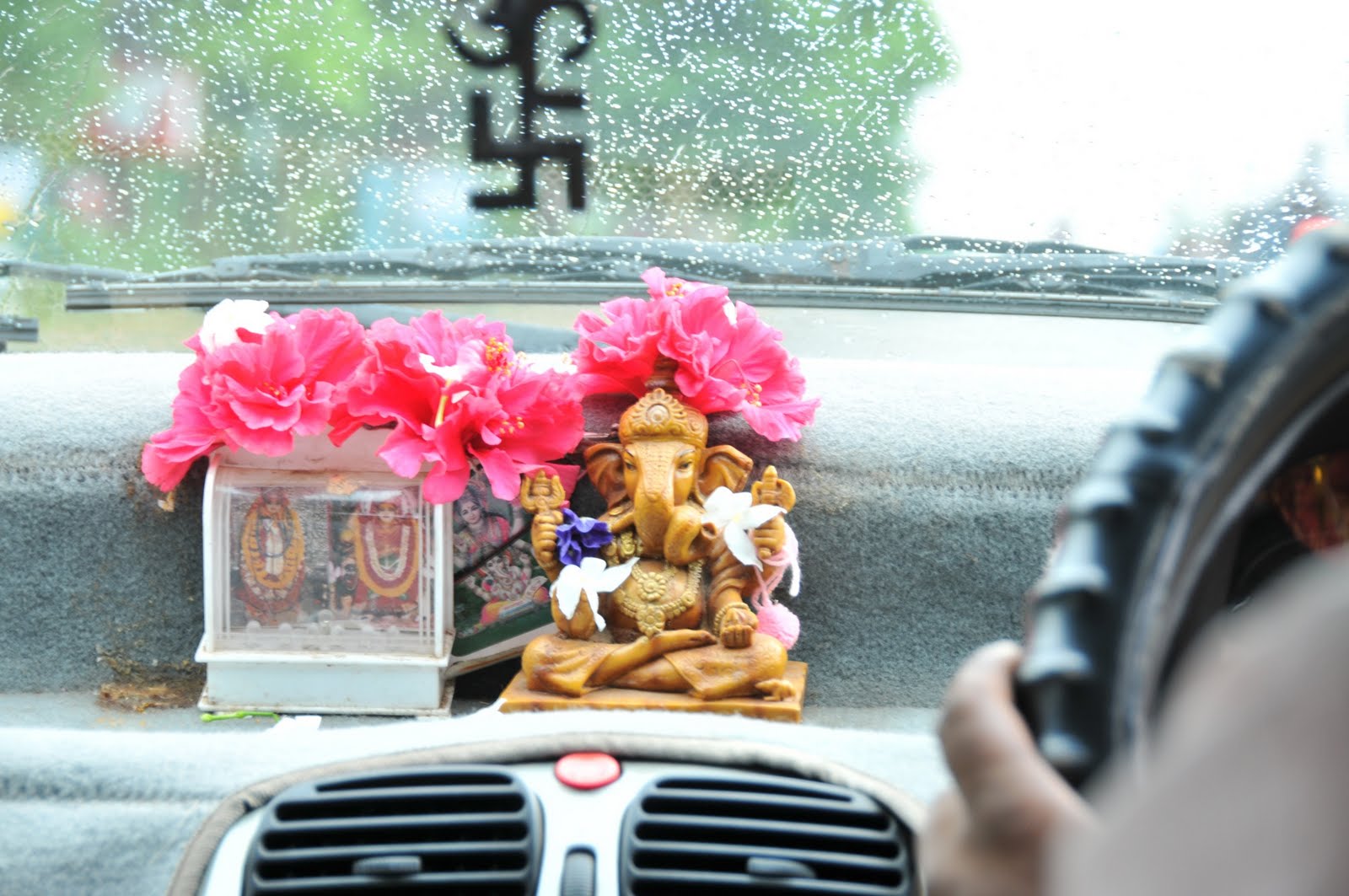 (Photo: Ganesha, the elephant-headed god, is a fixture in many cars) As we drove around Bhubaneswar, I noticed how underdeveloped it is compared to the other major cities. This city is the capital of the state of Orissa, which holds 35 million people. You never, ever get over the sheer number of people you see in India. Swarms, hordes, oceans, wave after wave. And the languages? Over 70 distinct and different languages, and over 1000 dialects! This country is nothing short of a miracle of cooperation and efficiency.