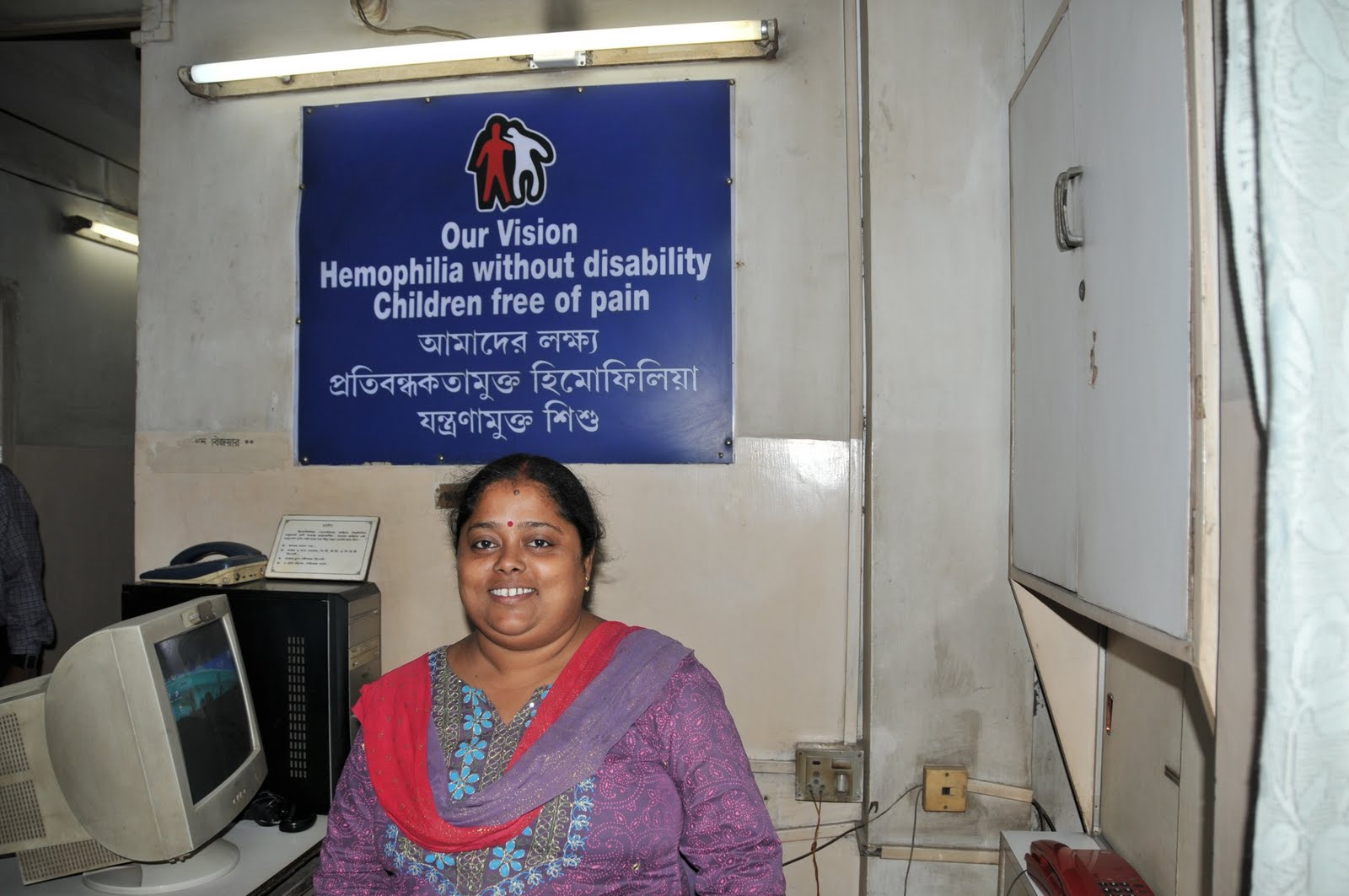 As we joked, Balshiram pointed out the security camera in the corner, a very rare luxury, to monitor the factor supplies. I joked that I thought this was their security camera, and I pointed to the wall photo of Ashok Verma, founder of HFI, who passed away in 2004. We all laughed, and felt that Ashok would be proud of us all today, to implement a program that directly and immediately touches the lives of the poorest with hemophilia in India, a program that saves lives.