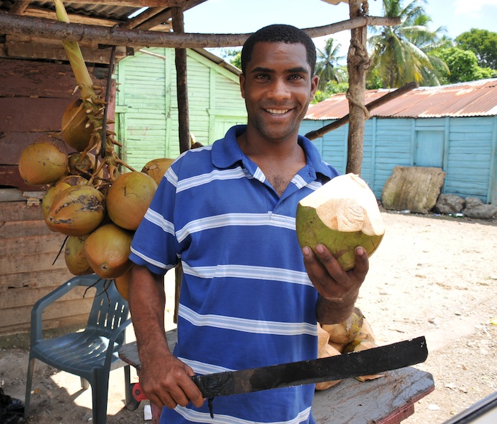5:30 am, in the near dark, a guest at Haydée’s house. Hayée is president of FAHEM, the hemophilia organization of the Dominican Republic, and a good friend and colleague. We’ve worked together for 18 years now. We share a light breakfast, eggs only, and a quick hola to housekeepers Isabel and Anna. Our team assembles on Haydée’s front patio: Fendi Bisono (a young man with hemophilia who is our main contact for Save One Life in the DR), Mecho, Haydée’s sister and treasurer of FAHEM, Eduardo, her husband, a successful architect,  Dra. Joanne Taveras, the adult hematologist and also our friend (oh let’s face it; everyone here is friends with everyone! When they say Mi casa es su casa they are serious), Haydée of course, Zoraida, me and our driver José. We have a large van, very comfortable. And off we go! This