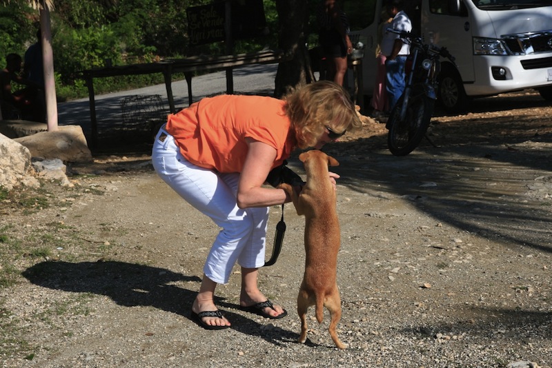 Afterwards, we headed to see Gabriel, a 20-year-old with hemophilia. He is propped on the back of a motorbike–no helmets of course–that whizzes along the dirt roads for 15 minutes, showing us the way to his house. Typical slat walls and steel roof. His mother Wanda is a live wire! Loud and animated, she commands attention when she walks in a room. After a brief visit, she pointed us down the road, to where her son Gabriel actually lives. We shuffled down the dirt road, passing several shacks, sun warmly toasting us, and approached Gabriel’s shack. Outside in the sunshine, a weakened puppy lay, same color as the dirt. It could only have been about a month old. I stooped to pet it, cradle his head; it looked up at me and leaned its head into my hand and licked my finger.  I saw fleas scuttling through its fur, and the ants on the ground crawled freely over it. It had sores on it, poor baby.