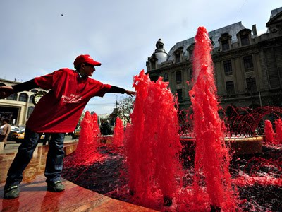 World Hemophilia Day was celebrated Saturday around the world in many different ways. The best story I’ve heard so far is how the Romanian Hemophilia Society turned a Bucharest city fountain blood red to raise public awareness of the disorder. I heard from my Romanian friend and partner Adriana that the government then pledged to increase funding to hemophilia 70%. That’s a big way to celebrate!