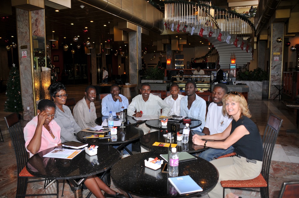 Today, Sunday December 2, we had a meeting of the Zimbabwe Haemophilia Association (ZHA) at my hotel, the Rainbow Towers in downtown Harare. The committee members quietly presented a still grim picture of life with hemophilia: Zimbabwe is totally dependent on factor donations, and in the past year ten patients died from lack of clotting factor. Unemployment still hovers are 80% and most of the men with hemophilia cannot get jobs. With a show of hands, five of the eight at the meeting were not presently employed. There is only one hematologist in the entire country, in Harare. One. And she’s Cuban. Seriously, God bless the Cubans for sending their doctors out in the world as part of their public health policy.